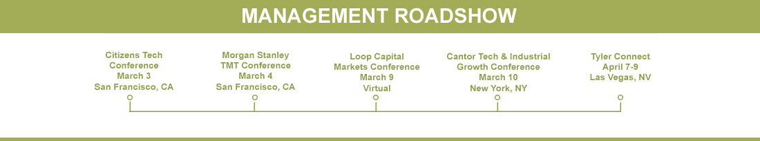 Tyler’s corporate responsibility program aligns with our strategic business objectives and reflects our mission, vision, and values. Our intentional approach focuses on addressing primary business and stakeholder material topics. Tyler’s deliberate approach of steady, continuous improvement and value creation drives our sustainability journey. We look forward to sharing our progress in our 2025 corporate responsibility report which will be published in the spring.